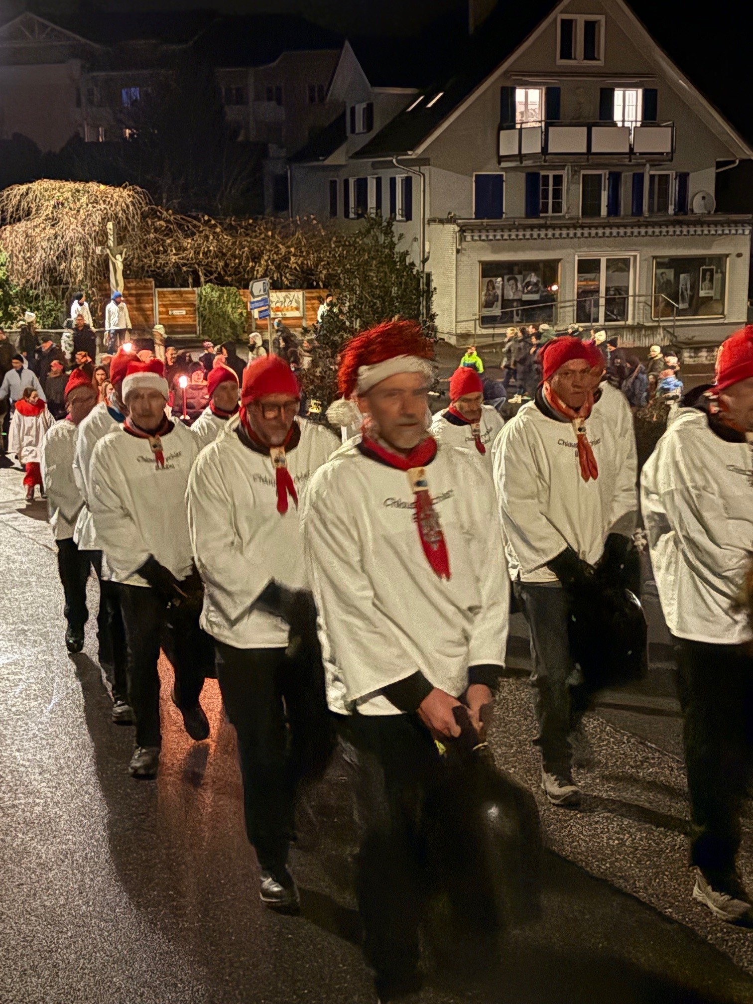 Um 17:30 Uhr war es soweit. Die Lichter wurden gelöscht, das Dorf versank in Dunkelheit. Von weitem hallten die dumpfen und kraftvollen Töne der Trichler durch den Abend und die ersten Laternen erhellten das Dorf. Begleitet wurde der Einzug durch die eindrücklichen Geislechlöpfer. Dann endlich trat der Samichlaus mit grossen weiten Schritten in Erscheinung. Er winkte den vielen Kindern und Erwachsenen zu, die am Strassenrand auf ihn gewartet haben. Der Weg führte ihn traditionell auf den Margrethenplatz. Dort angekommen begrüsste er die vielen grossen und kleinen Besucherinnen. Mit einer schönen Geschichte stimmte er die Bevölkerung und insbesondere die Kinder auf die kommenden Chlaustage ein.