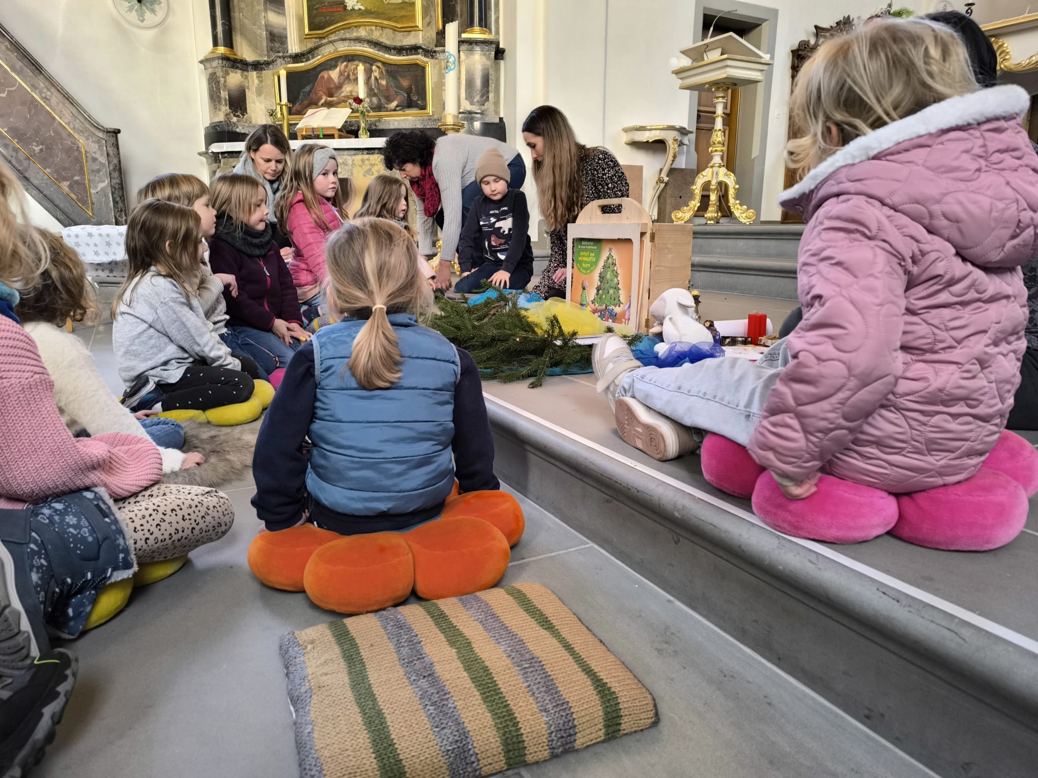 Über 20 Kinder fanden am 22. November den Weg in die Kirche und erfuhren dabei vieles über die Adventszeit und ihre Bräuche: Samichlaus, Adventskranz, Weihnachten sowie die Bedeutung des Wartens und wie Rituale helfen, diese Zeit zu verkürzen.