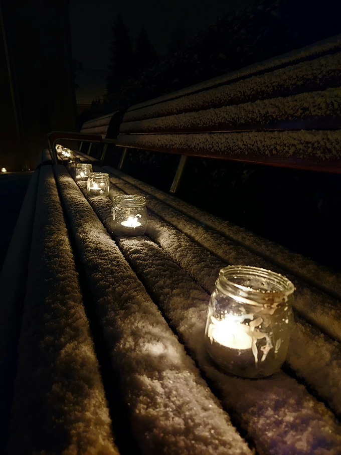 Nach der Feier konnten alle sich mit einem warmen Punsch am Feuer, in einer verschneiten Umgebung, aufwärmen. Herzlichen Dank an alle, die mit dabei waren.