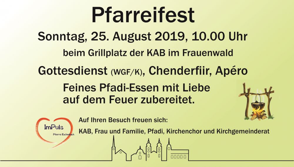Auf Ihren Besuch freuen sich ImPuls Pfarrei Eschenbach, Pfadi, Frau und Familie, KAB, Kirchenchor und Kirchgemeinderat