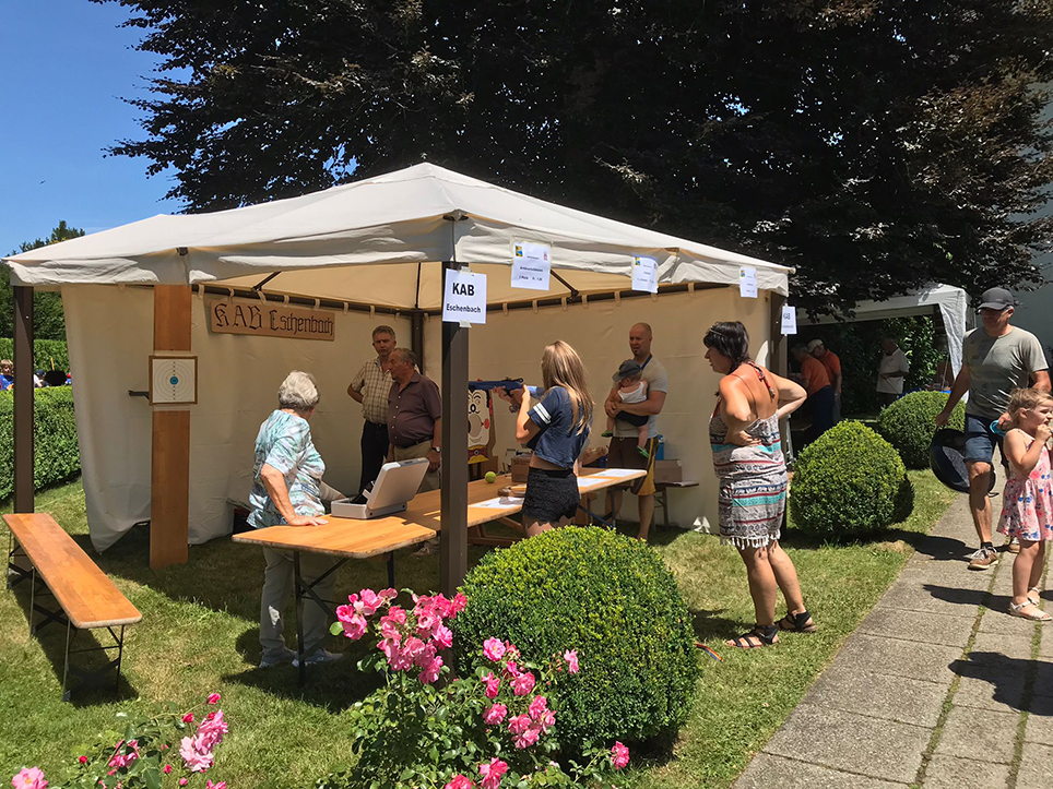 Nach dem gemütlichen Apéro vergnügten sich Gross und Klein beim Chilbi-Treiben. Die einen versuchten ihr Glück beim Torschiessen des FC Eschenbach oder beim Armbrustschiessen der KAB, andere hofften auf einen süssen Preis beim Glücksrad des Männerchors. Bei den Kleinsten waren der Streichelzoo und das Ponyreiten die grossen Anziehungspunkte. Mit Perfektion und Ausdauer wurden Lebkuchenherzen verziert und Päckli oder Enten gefischt. Der Männer-Kochclub verwöhnte die Gäste mit einem feinen Risotto und Luganighe. Für viele Lacher sorgte Alleinunterhalter Schösu Hafner. Mit Witz und musikalischen Highlights holte er die Chilbi-Besucher ab und bot ihnen ein abwechslungsreiches Programm.