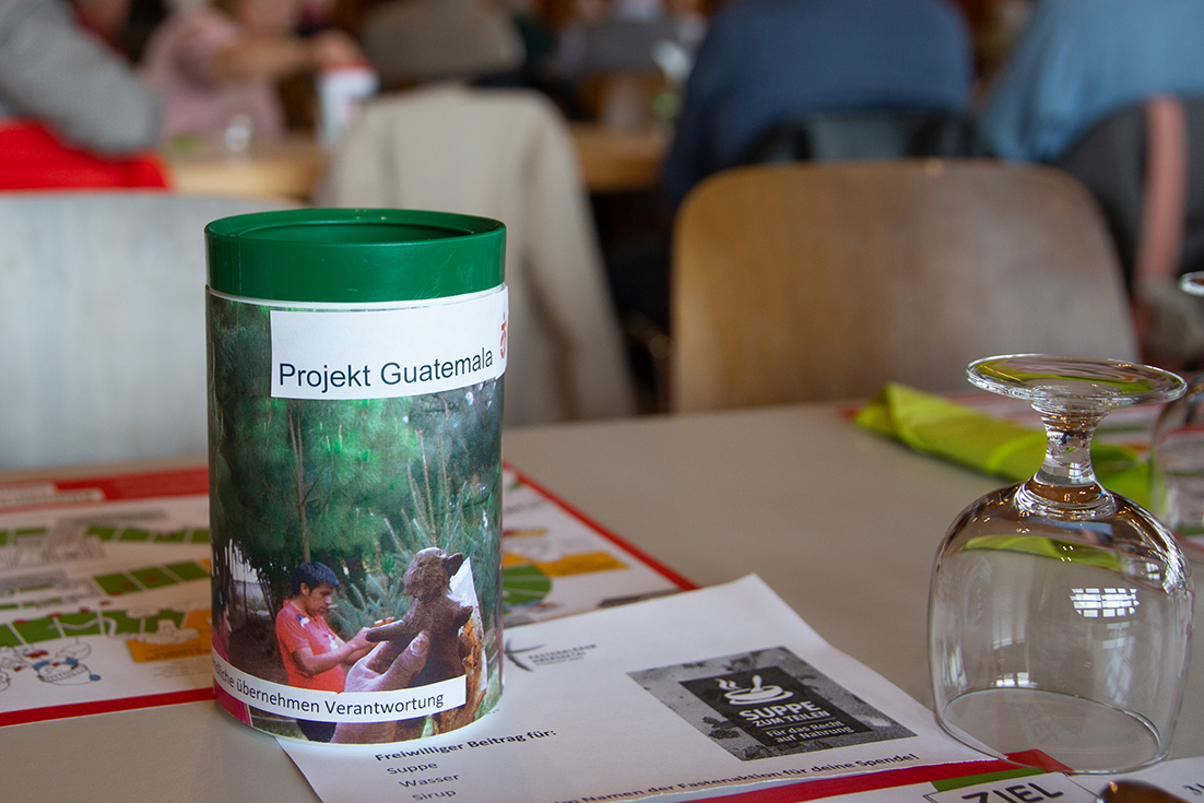 Schon beim Eintreten ins Möösli konnte man die feine Suppe riechen. Nach dem Familiengottesdienst servierte der Pfarreirat und seine Helfer den Suppenzmittag. Die Gäste konnten zwischen zwei feinen Suppen wählen: einer Gemüsesuppe und einer Gerstensuppe, sehr gut zubereitet von Wisu Eugster und Team. Im Anschluss gab es kein Vorbeikommen am Kuchenbuffet: Es lockten die vielen leckeren Kuchen. In den letzten zwei Jahren hat der Pfarreirat jeweils eine Suppe-to-go organisiert. Alle Anwesenden waren sich einig, dass es einiges schöner ist, sich gemeinsam zum Essen und Trinken zu treffen und sich austauschen zu können. Und ganz nebenbei wurde fleissig für die Fastenaktion gespendet. Der Pfarreirat freute sich, über die grosse Gästeschar und die grosszügigen Spenden.