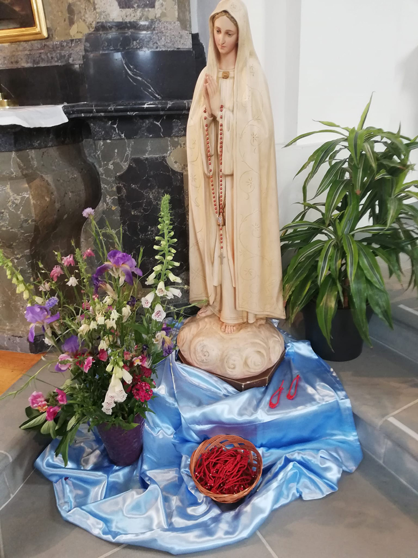 Die Mitfeiernden setzten sich mit ihren eigenen Knoten auseinander und durften all ihre Ängste, Sorgen und Belastungen Maria übergeben. Im Austausch bekamen sie einen Herzknoten, welcher sie immer an die Liebe Gottes, die Zuversicht und die Hoffnung erinnern soll, welche auch Maria stets bei sich trug.